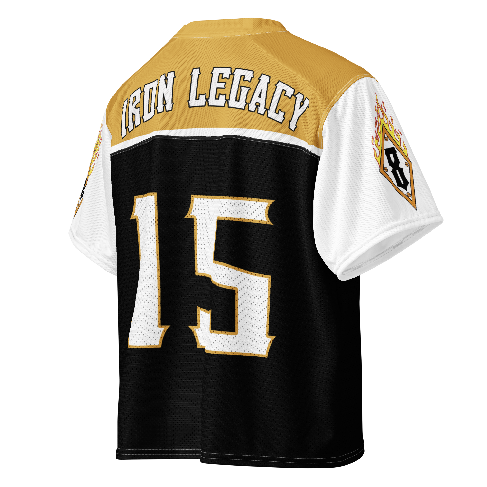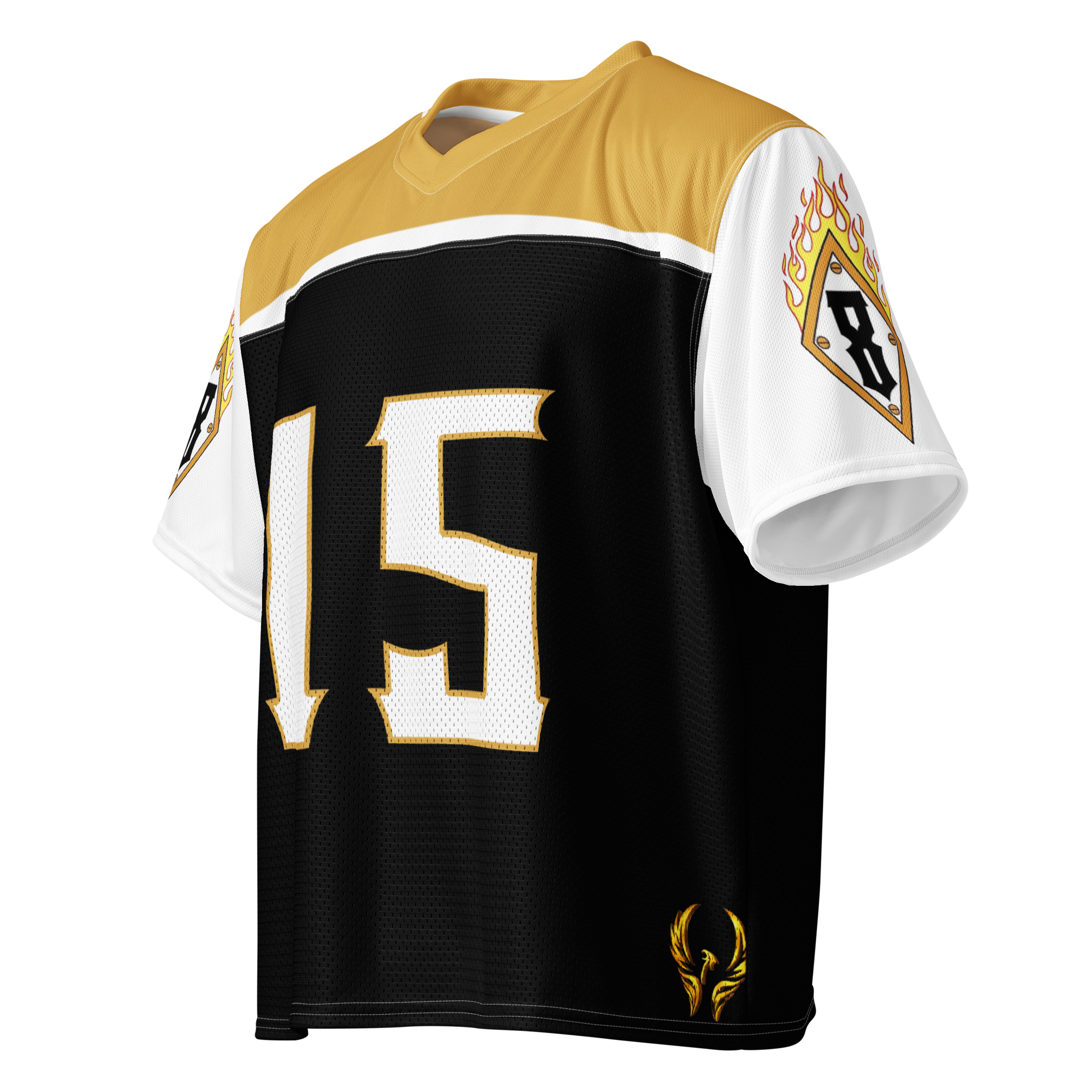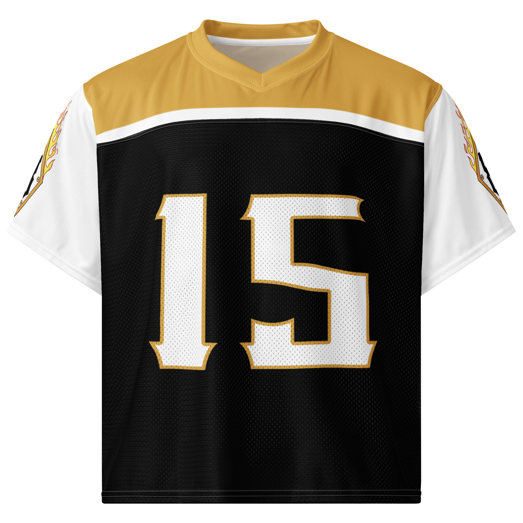 A breathable football jersey with silky top fabric and heavy mesh bottom. Moisture-wicking, 2-way stretch, and relaxed fit.